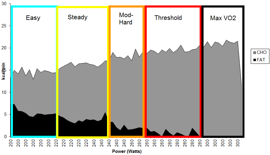 zone of 220-240W, for a 75kg, you can see that aerobic glycolysis (sugar